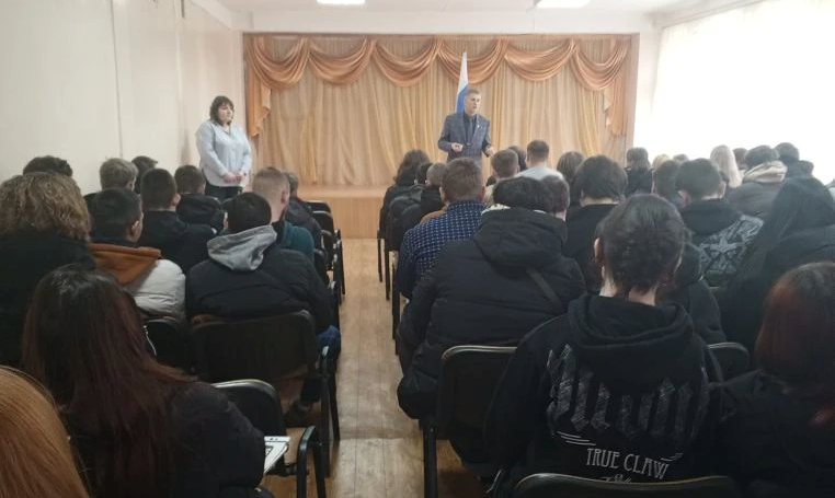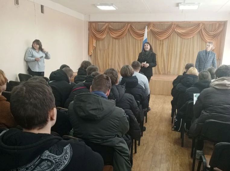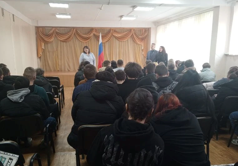 Сегодня состоялась встреча студентов 👨🎓 техникума с представителями Калужского института бизнеса 🈺 и управления, секретарём Пузиной К.А., проректором Солдатенковым С.А., деканом в г. Людиново от этого института Фроловой О.Н.. Они рассказали о новых правилах приема, о льготах для тех, кто пойдет служить в армию 🪖, раздали студентам газеты о новостях 📰 институтам сувениры на выбор (ручки, блокноты, браслеты). Студенты узнали много интересного