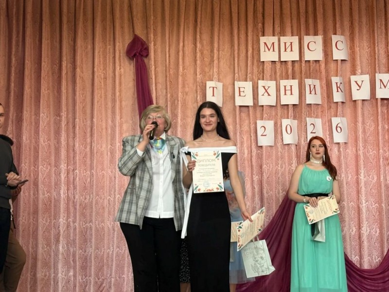 Астаховой Т.-Мисс Весна , Кузиной Н.- Мисс Артистичность, Ким Е.- Мисс Креатив, Батура Н.- Мисс Очарование, Хазиковой В.- Мисс Элегантность, Лесиной Д. Мисс Улывка, а Диплом Победителя «Мисс Техникум – 2026» получила Батура Нина.