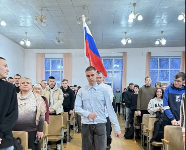 понедельникам, утро в техникуме началось с церемонии выноса флага РФ и