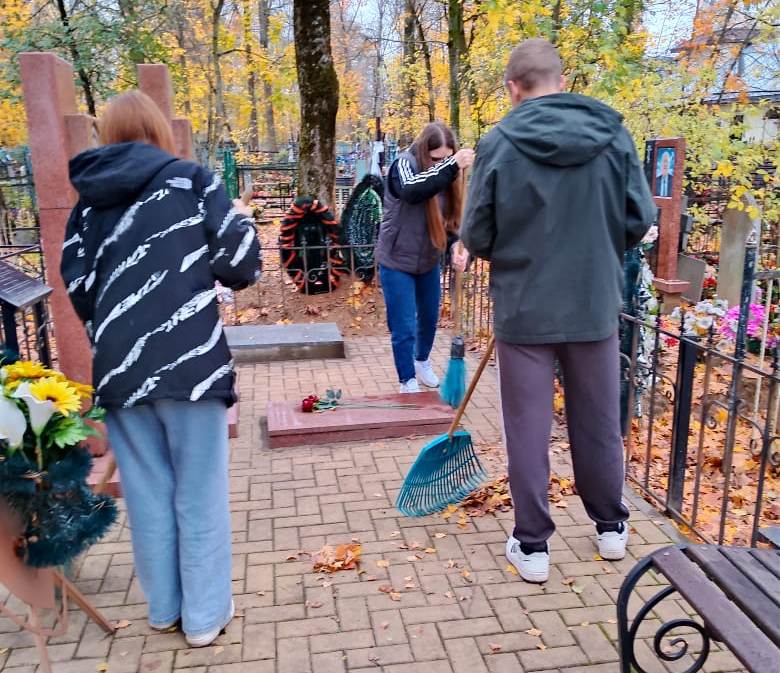 Студенты техникума, проживающие в общежитии, под руководством воспитателя общежития Котовой В.А. ухаживают за воинским захоронением на городском кладбище. В октябре студенты вновь посетили памятное воинское захоронение – могилу А. Лясоцкого и А. Шумавцова, закрепленную за нашим учреждением и провели осеннюю уборку. Во время уборки студенты убрали опавшую листву, помыли памятник, привели могилу в надлежащее состояние.